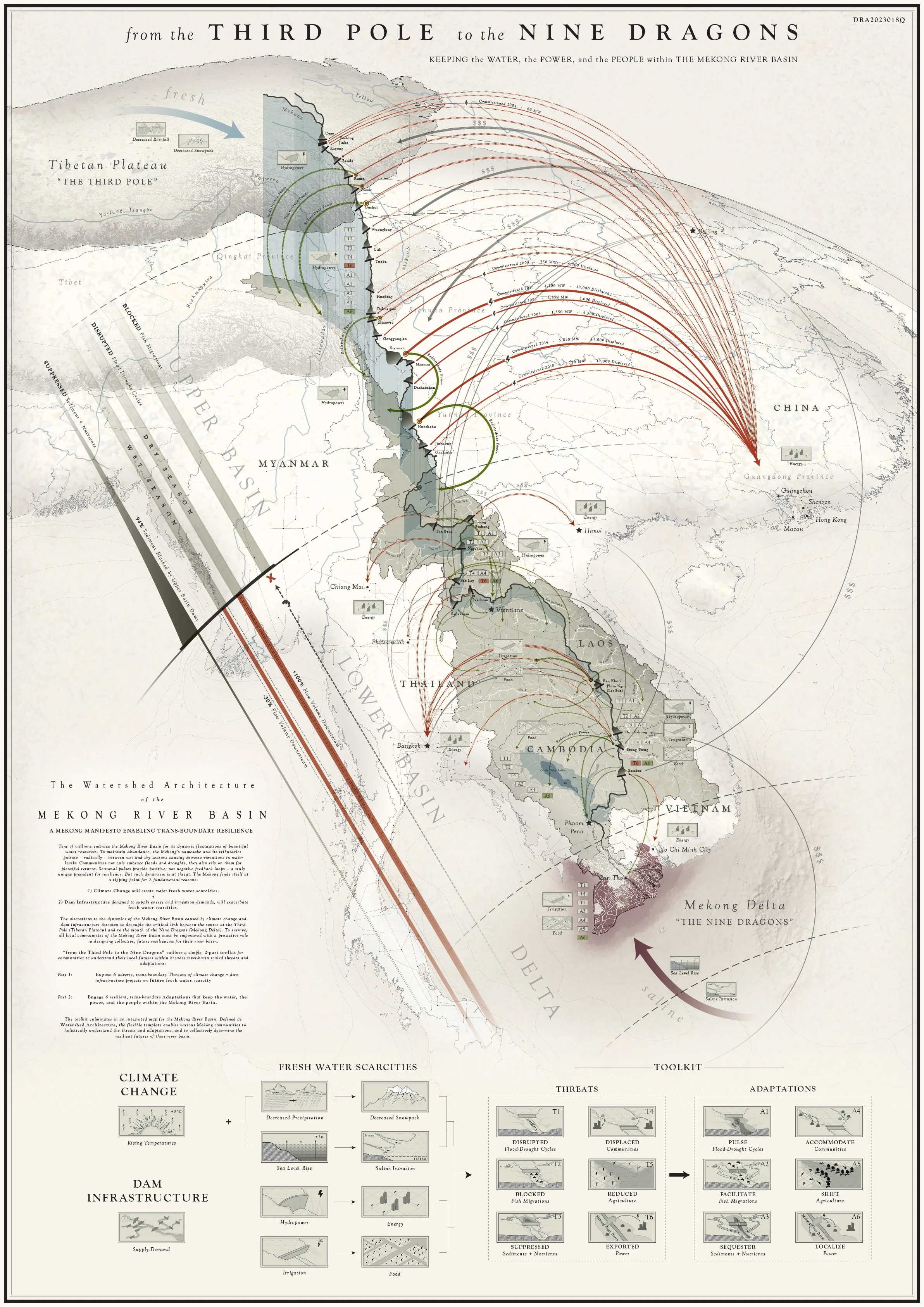Our proposal established a simple, 2-part toolkit, the first part of which exposes six adverse, trans-boundary threats to future fresh water supplies surrounding climate change + dam infrastructures. The second part engages six resilient, trans-boundary adaptations that communities can use to understand the threats and keep water, power, and people within the Mekong River Basin.